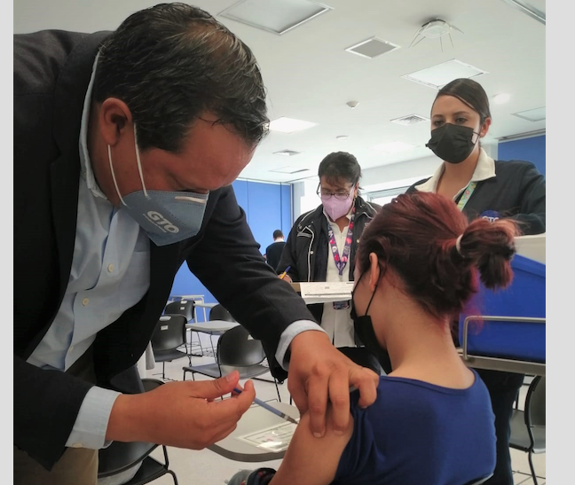 En el Hospital General de León el Secretario de Salud en Guanajuato, Dr. Daniel Díaz Martínez aplicó las primeras dosis a menores de 12 a 17 años con comorbilidades, y se estarán aplicando en una primera etapa las primeras 4 mil 916 dosis a nivel estatal.