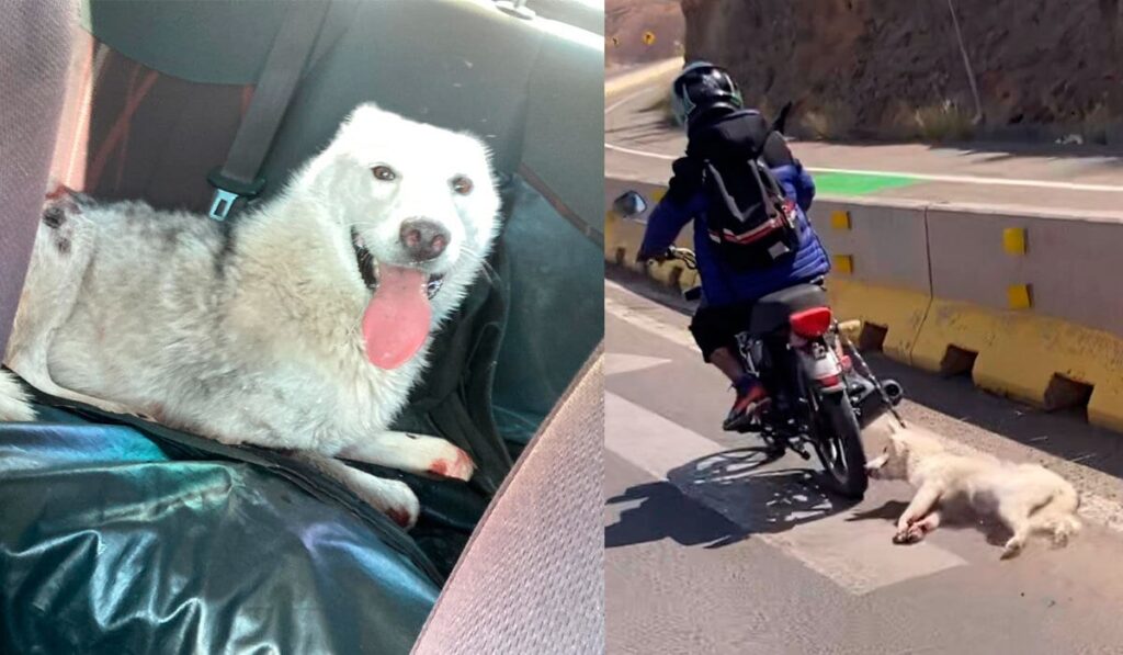 En el video se ve como un sujeto amarró a un perrito a su motocicleta mientras este avanzaba por una carretera.