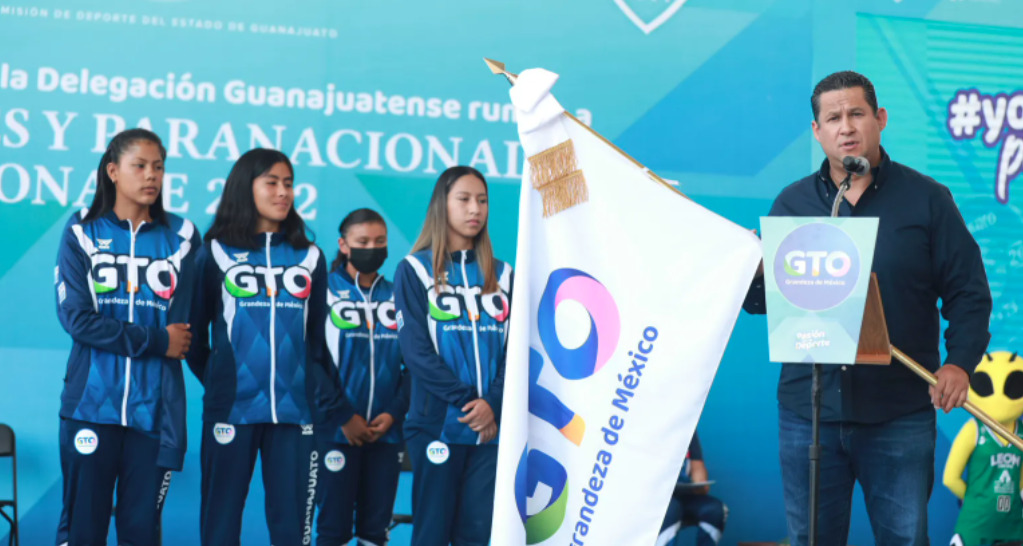 “No están solos, seguiremos apoyándolos, y que esta bandera que hoy tomaron sea un estandarte que lleve sueños y todo el apoyo de los más de seis millones de guanajuatenses; estoy convencido que cosecharán muchas medallas para orgullo de sus padres, su familia, sus escuelas, sus maestros y sus entrenadores”, dijo el Gobernador.