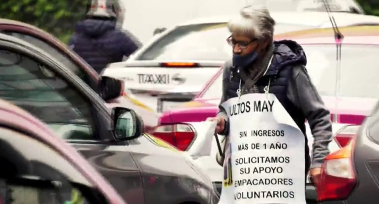 Ciudad de México (1 julio 2021).- En la Ciudad de México es común ver a adultos mayores pidiendo dinero a los automovilistas para sortear gastos mínimos, en espera de regresar a los supermercados como empacadoresvoluntarios.