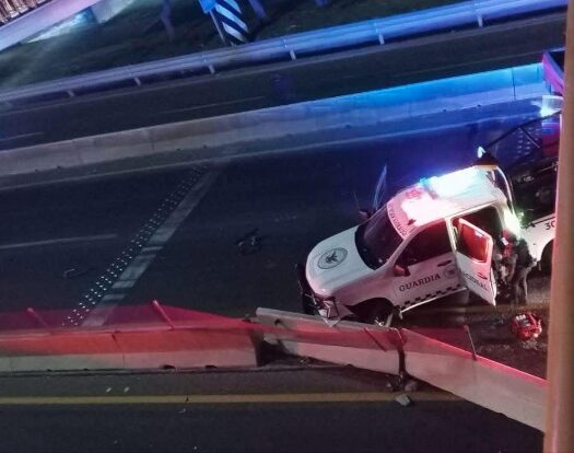 Los elementos de la GN acudieron a la zona y uno agente federal se bajó de la patrulla para abanderar el lugar, sin embargo una camioneta pick-up de color rojo que circulaba a exceso de velocidad pasó por encima al elemento.