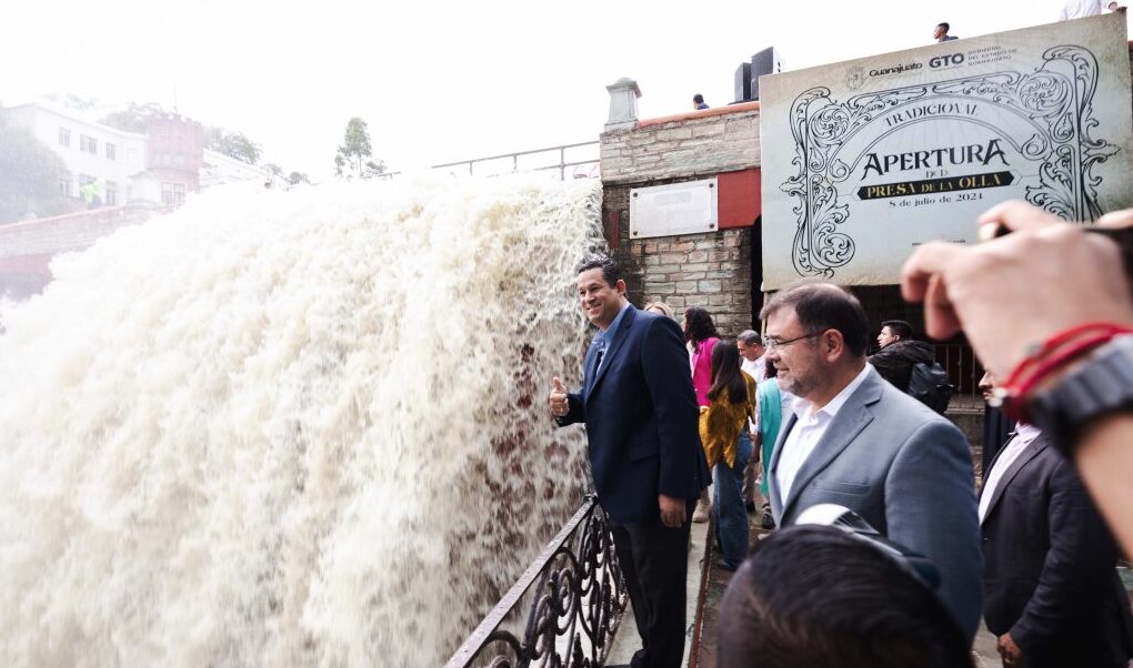 Guanajuato, Gto. 08 de julio de 2024.- El Gobernador del Estado, Diego Sinhue Rodríguez Vallejo, encabezó la ceremonia de la apertura de las compuertas de la Presa de la Olla, en Guanajuato capital.