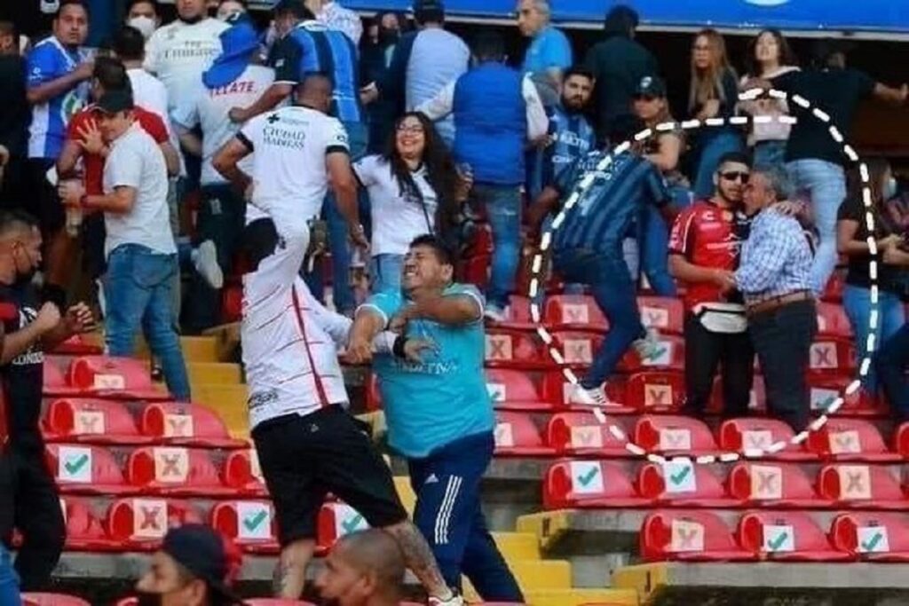 Comonfort, Guanajuato (8 marzo 2022).- Ellos son Agustín y Ricardo las dos personas que aparecen en una fotografía, que se viralizó, en medio de la trifulca durante el partido de Querétaro contra Atlas el pasado fin de semana.