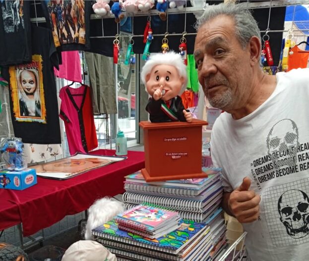 «Ya no lo iba a meter en la venta porque el presidente ya va de salida, sin embargo la gente me lo sigue pidiendo, entonces lo seguiré trayendo ahora para el día del padre. También vendo muñecas de Anabel y les digo pásele por la Xóchitl Gálvez».