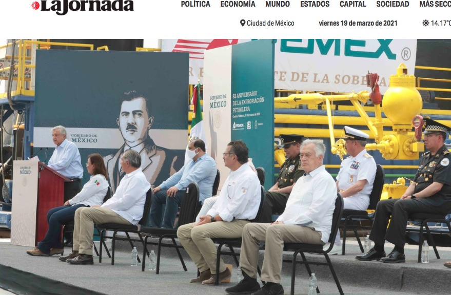 En la ceremonia por el 83 aniversario de la expropiación petrolera, celebrada en Tabasco, el mandatario ratificó la política energética de su administración, en momentos en que su equipo litiga para evitar el freno a la nueva Ley de la Industria Eléctrica.
