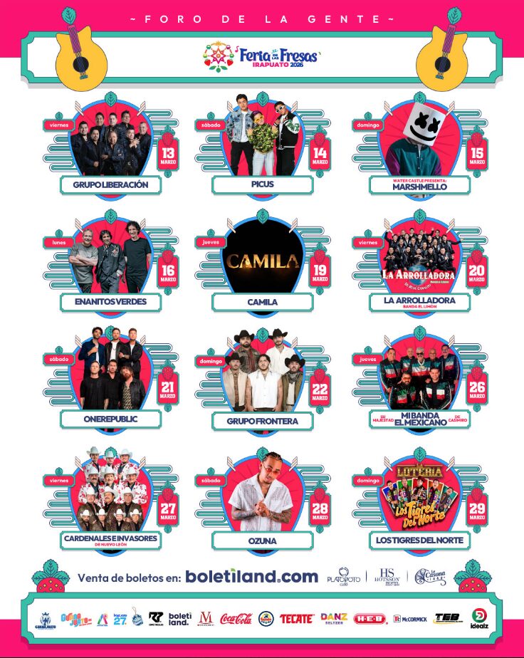 ANUNCIAN CARTELERA INTERNACIONAL PARA LA FERIA DE LAS FRESAS 2026 EN IRAPUATO