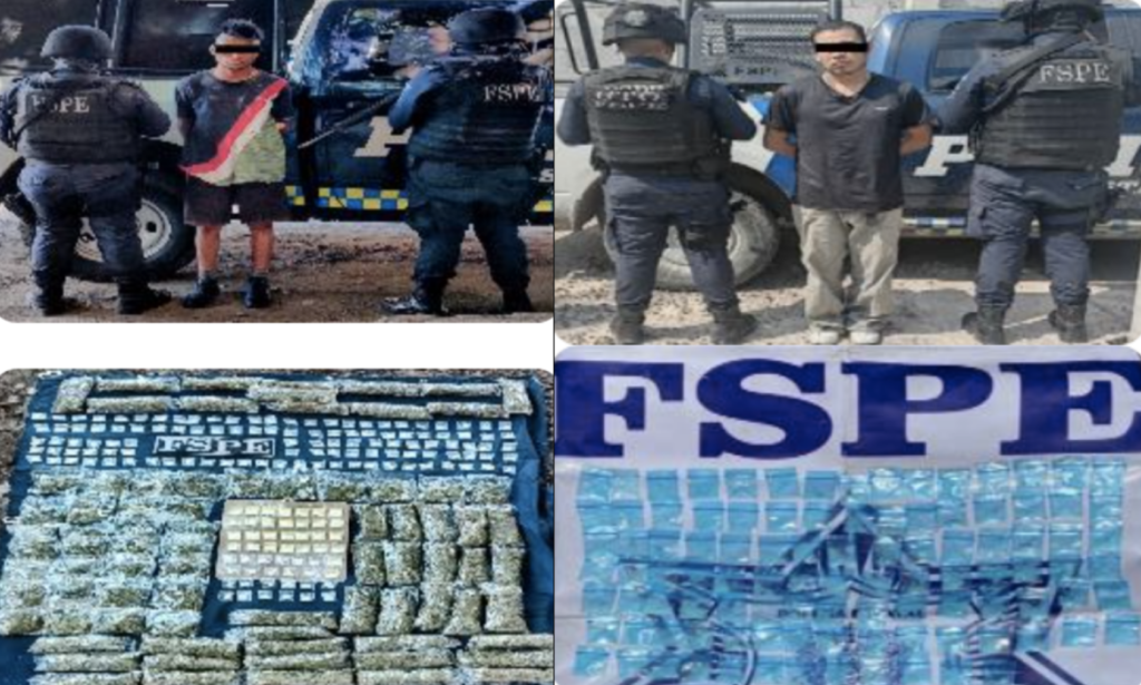 Durante un operativo de vigilancia en el municipio de Villagrán, en la colonia Villas del Sol, se puso a disposición a un masculino con 102 dosis de drogas sintéticas; en el fraccionamiento Tres Puntas, se detuvo a dos masculinos con un arma y 39 dosis de drogas sintéticas; y en Abasolo, en la comunidad Las Masas, se detuvo a un masculino que traía consigo 95 dosis de drogas sintéticas.
