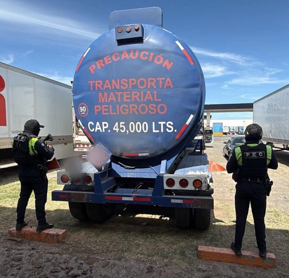 Como parte de la estrategia estatal de Coordinación Operativa de la Nueva Fuerza de Inteligencia Anticrimen (CONFIA), los oficiales realizaban labores de patrullaje y vigilancia sobre la carretera Celaya–Dolores Hidalgo, donde observaron el remolque tipo pipa color azul, con placas del Servicio Público Federal, estacionado sin tripulación ni señales de resguardo.