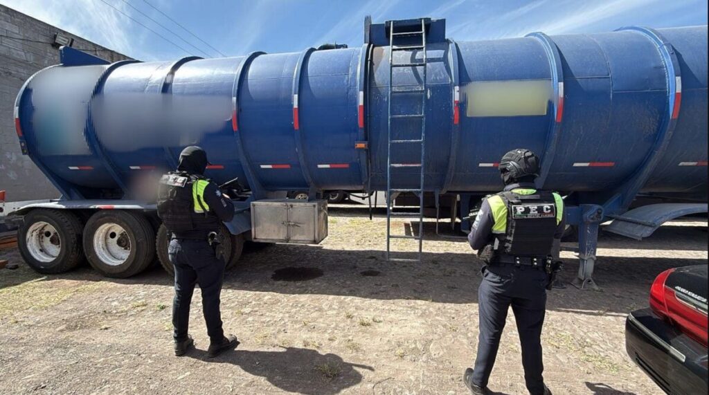 Como parte de la estrategia estatal de Coordinación Operativa de la Nueva Fuerza de Inteligencia Anticrimen (CONFIA), los oficiales realizaban labores de patrullaje y vigilancia sobre la carretera Celaya–Dolores Hidalgo, donde observaron el remolque tipo pipa color azul, con placas del Servicio Público Federal, estacionado sin tripulación ni señales de resguardo.