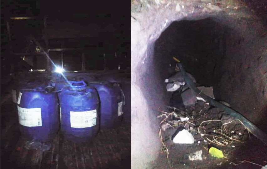 En el lugar se aseguró una camioneta cargada con 12 bidones de 30 litros cada uno, todos ellos llenos de combustible.
