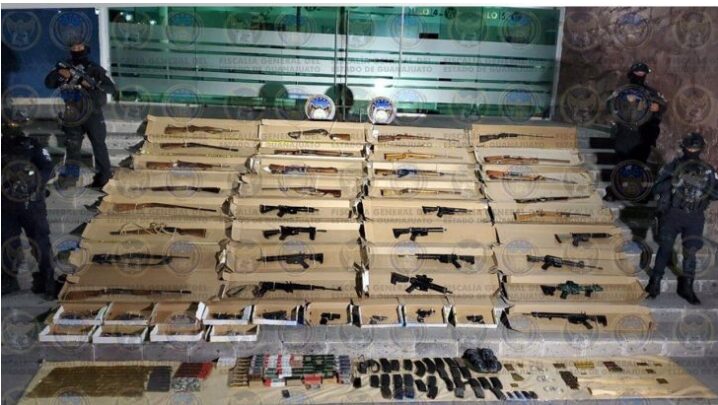 San Felipe, Gto. (25 abril 2024).- En San Felipe fueron aseguradas 52 armas de fuego, miles de cartuchos útiles, droga y 130 mil cigarros, informó la Fiscalía General del Estado (FGE).
