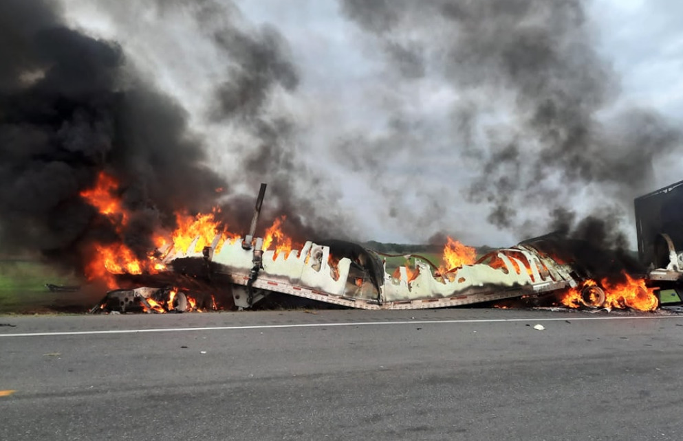 La Secretaría de Seguridad Pública de Tamaulipas reportó que en el lugar de los hechos no se halló al tracto camión que llevaba la caja del tráiler.