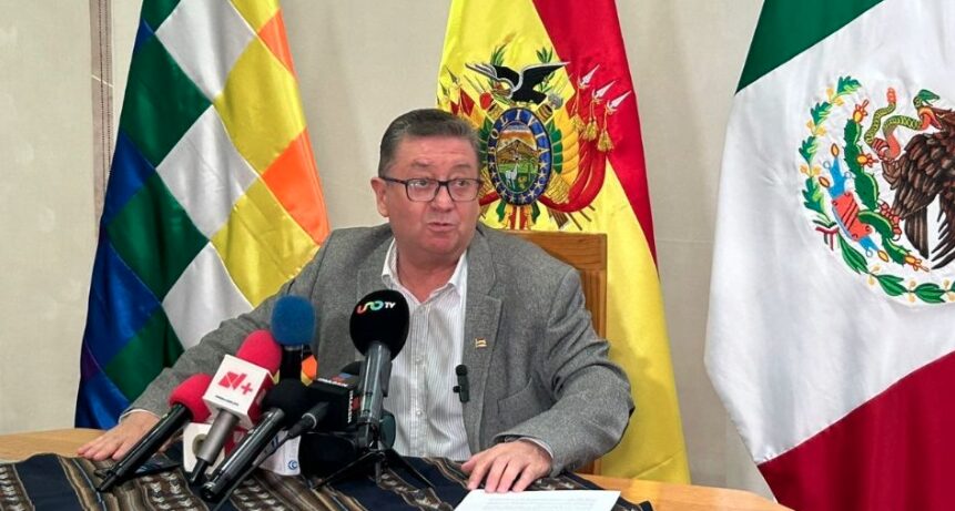 Al dar lectura a un mensaje en la sede diplomática en la colonia Veronica Anzures, agradeció el respaldo del presidente de México, Andrés Manuel López Obrador; de la virtual Presidenta, electa, Claudia Sheinbaum a la Cancillería Mexicana así como de organismos internacionales y jefes de Estado su condena y el respaldo y el apoyo incondicional al presidente Luis Arce y la pueblo boliviano.