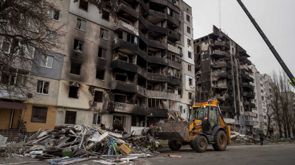 La oficina del presidente Volodimir Zelenski dijo que casi una docena de edificios de gran altura fueron destruidos.