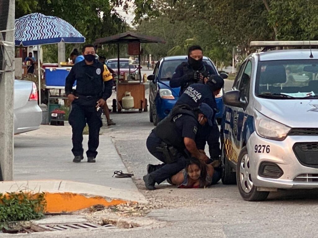 De acuerdo con información preliminar, los policías abordaron a la mujer y procedieron a someterla con violencia innecesaria, al parecer porque se encontraba en estado de ebriedad alterando el orden público.
