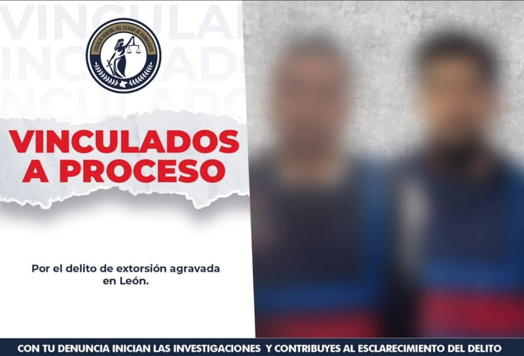 León, Gto. (25 abril 2026).- La Fiscalía General del Estado de Guanajuato logró la captura de dos presuntos extorsionadores en León, quienes fueron vinculados a proceso penal por este delito.