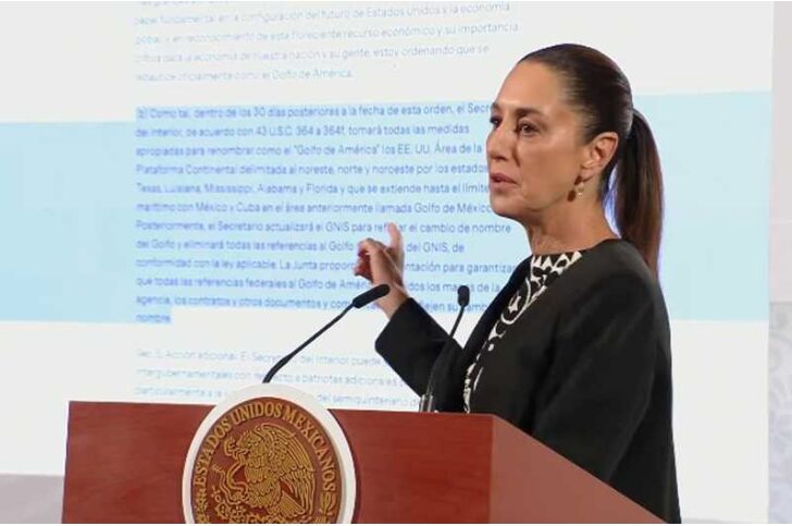En cuanto al tema del Golfo de México, subrayó que el decreto firmado por Trump dice que “le va a llamar Golfo de América en su plataforma continental de Estados Unidos. Para nosotros y el mundo entero sigue siendo Golfo de México”.