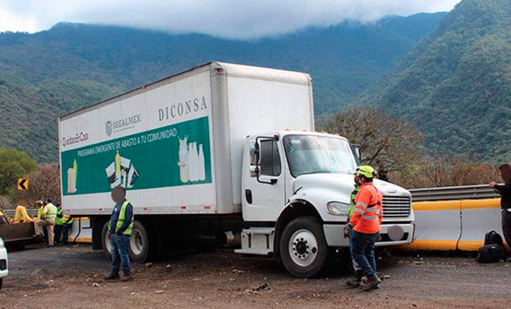 Ellos viajaban en el camión torton de Diconsa, blanco, sin número económico, el cual quedó abandonado por su conductor, luego de chocar contra el muro central de la vía rápida.
