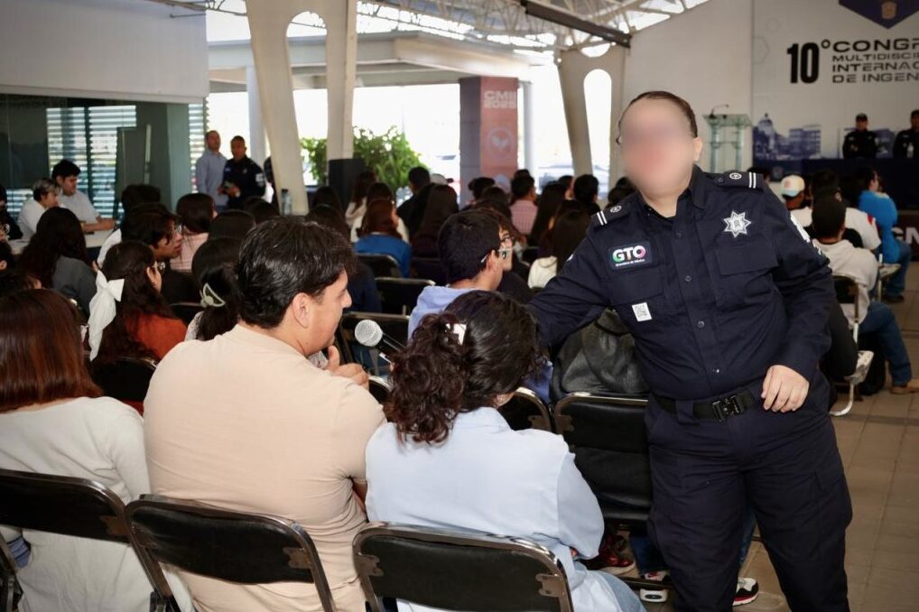 Celaya, Gto., a 26 de octubre de 2025.- La mejor arma contra cualquier delito que tendrán los ciudadanos será siempre la prevención y la denuncia, fue el mensaje que dejaron integrantes del Escuadrón Antiextorsión a la comunidad estudiantil de la Universidad de Guanajuato campus Celaya-Salvatierra.