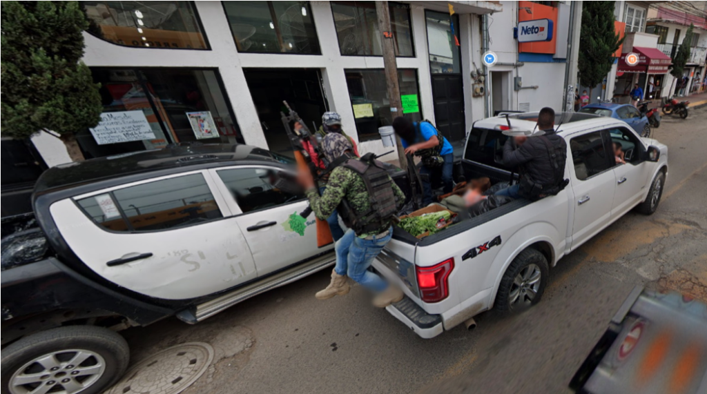 Estado de México (17 octubre 2022).- Usuarios detectaron que las cámaras de Street View de Google Maps captaron a un grupo de sujetos armados a bordo de una camioneta en calles del municipio de Texcaltitlán, Estado de México.