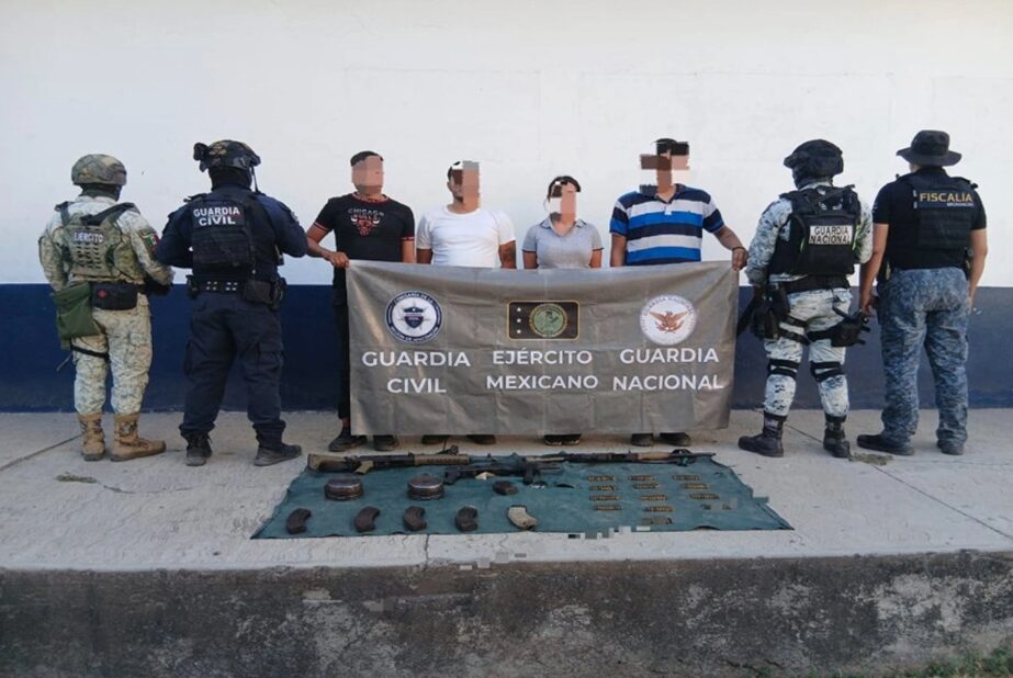 En una acción paralela, las mismas corporaciones en el marco también del Plan de Operaciones Paricutín interceptaron a cuatro individuos en Los Cajones, a quienes les fueron aseguradas tres armas largas, 130 cartuchos calibre 7.62 x 39 mm, dos cargadores de disco, dos cuatrimotos y un vehículo.