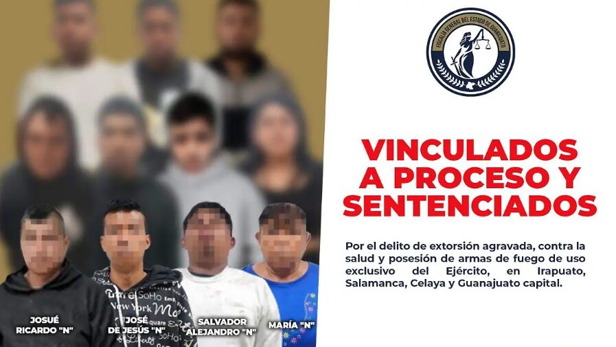 Como resultado del trabajo ministerial, los imputados fueron vinculados a proceso penal por el delito de extorsión agravada y delitos contra la salud. De ellos, cuatro ya han recibido sentencia condenatoria, con penas de varios años de prisión, lo que representa un resultado contundente en el combate a este delito de alto impacto.