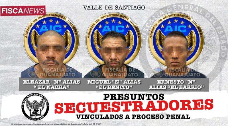 Una vez en audiencia de control, el Juez calificó de legal la detención y en subsecuente, el Agente del Ministerio Público formuló imputación a Ernesto “N”, alias “El Barrio”, de 33 años; Miguel “N”, alias “El Benito”, de 31 años y Eleazar “N”, alias “La Nacha”, de 39 años, como presuntos responsables de los delitos de secuestro agravado y robo equiparado, mientras que el adolescente fue canalizado a la Unidad Especializada en Justicia para Adolescentes.