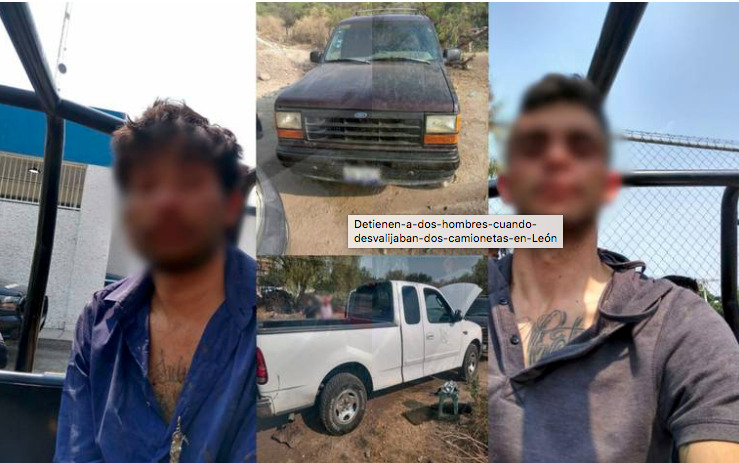 León, Guanajuato (5 de mayo 2021).- Gracias a la denuncia de vecinos dos sujetos que desmantelaban dos camionetas fueron detendidos tras una persecución.