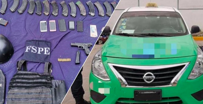 De manera inmediata, los oficiales de las FSPE aplicaron los protocolos de actuación y marcaron el alto a los tripulantes del taxi, a quienes al momento de la revisión preventiva, fueron encontrados en poder de lo siguiente: