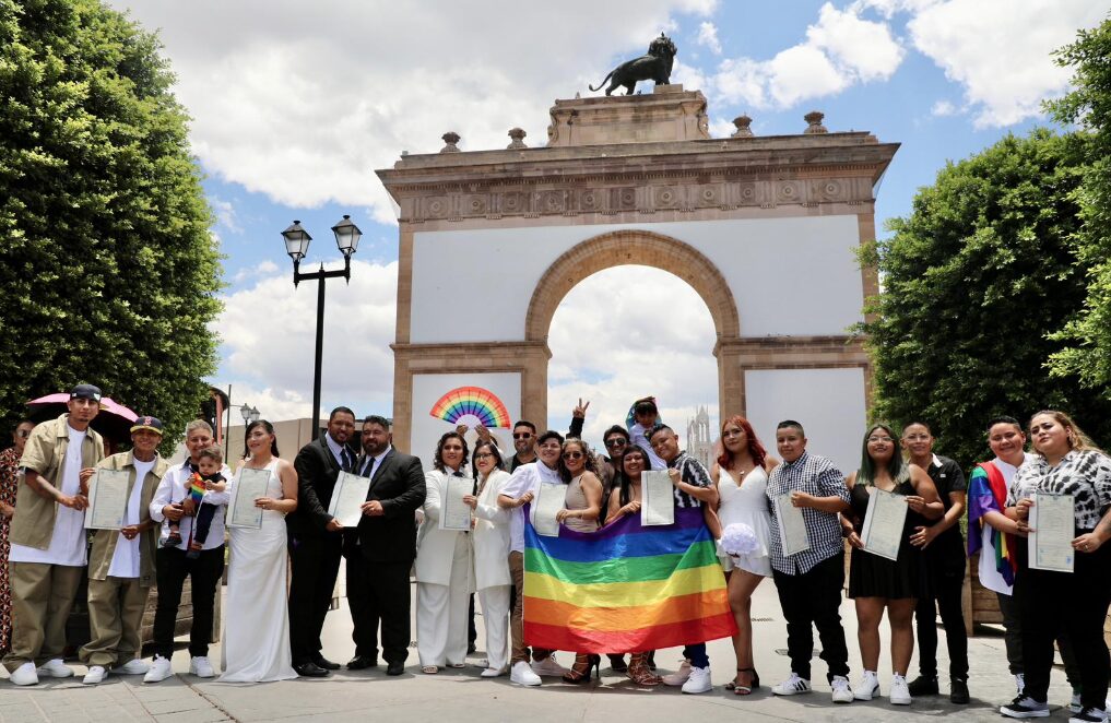 León, Gto. 15 de junio del 2024.- En el marco del Día Internacional del Orgullo LGBTQ+, la Dirección General del Registro Civil de la Secretaría de Gobierno del estado de Guanajuato, encabezó la celebración de 10 matrimonios igualitarios al civil.