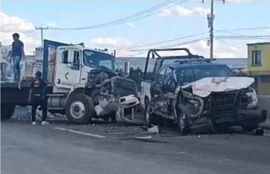 No hay un peritaje de cómo pudo ocurrir el percance, pero la patrulla de las Fuerzas del Estado quedó destrozada de la parte delantera.