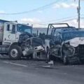 Se sabe que el conductor perdió el control de la pesada unidad y derrapó varios metros, luego quedó recostado sobre la cinta asfáltica, justo en el trébol cercano a la comunidad de Juárez.