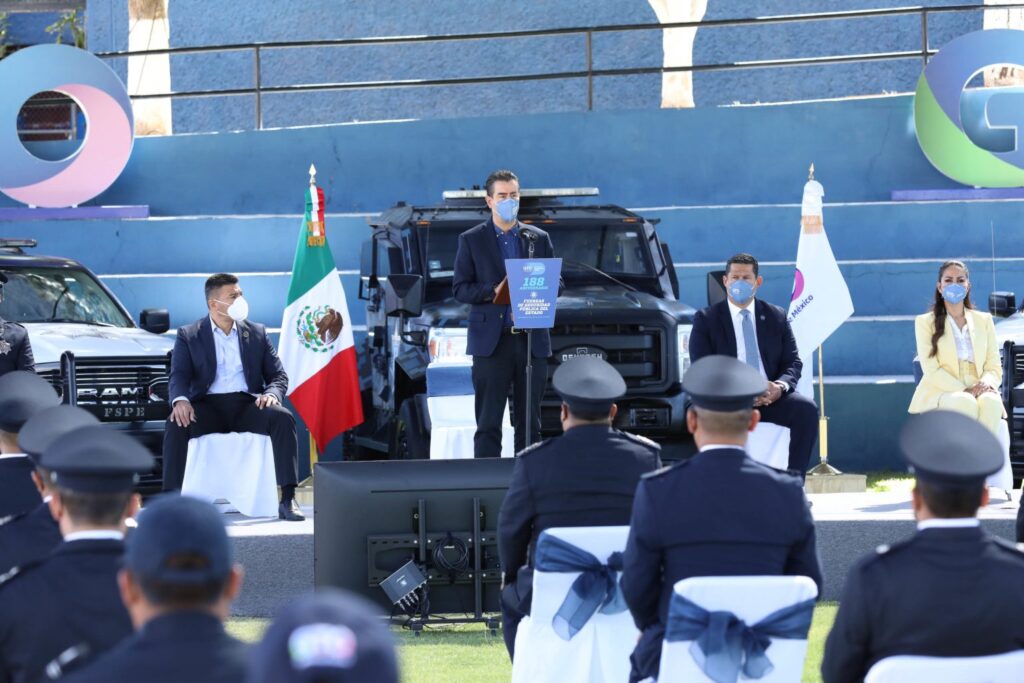 Por ello, es motivo de orgullo participar en esta conmemoración del 188 aniversario de las Fuerzas de Seguridad Pública del Estado. “Nuestra policía estatal, que con el esfuerzo de cada una y uno de sus elementos, se ha consolidado. Que participa activamente en el combate a los grupos delictivos, con inteligencia y con estrategia”, dijo.