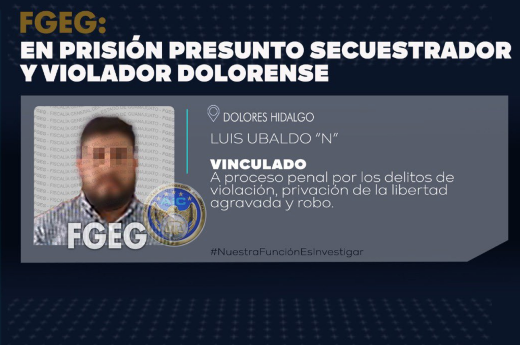 LUIS UBALDO “N” presuntamente violentó sexualmente a una joven y la mantuvo cautiva por cuatro días. Dolores Hidalgo