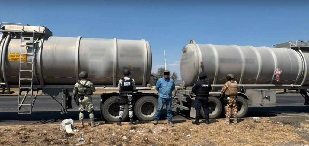Apaseo el Grande, Gto. (31 marzo 2026).- Con 99 mil litros de hidrocarburo fueron detenidos dos sujetos quienes tras una revisión no pudieron acreditar la procedencia legal de la carga.