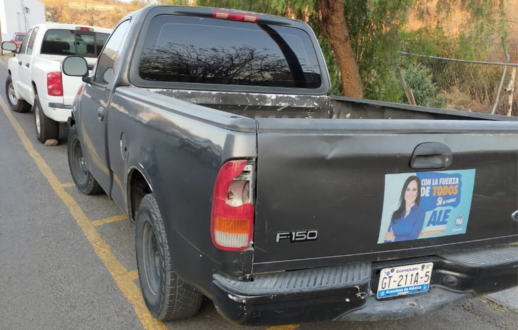 “¿Pero qué necesidad? El PAN va ganar holgadamente en León y aún así recurren a trampas cometiendo delitos electorales. Estas camionetas con propaganda de Alejandra Gutiérrez son de la Unidad de Análisis «Sombras» (donde los policías trabajan vestidos de civil) de CEPOL Poniente. VEHÍCULOS OFICIALES CON PROPAGANDA DEL PAN. Que descaro”, señala.