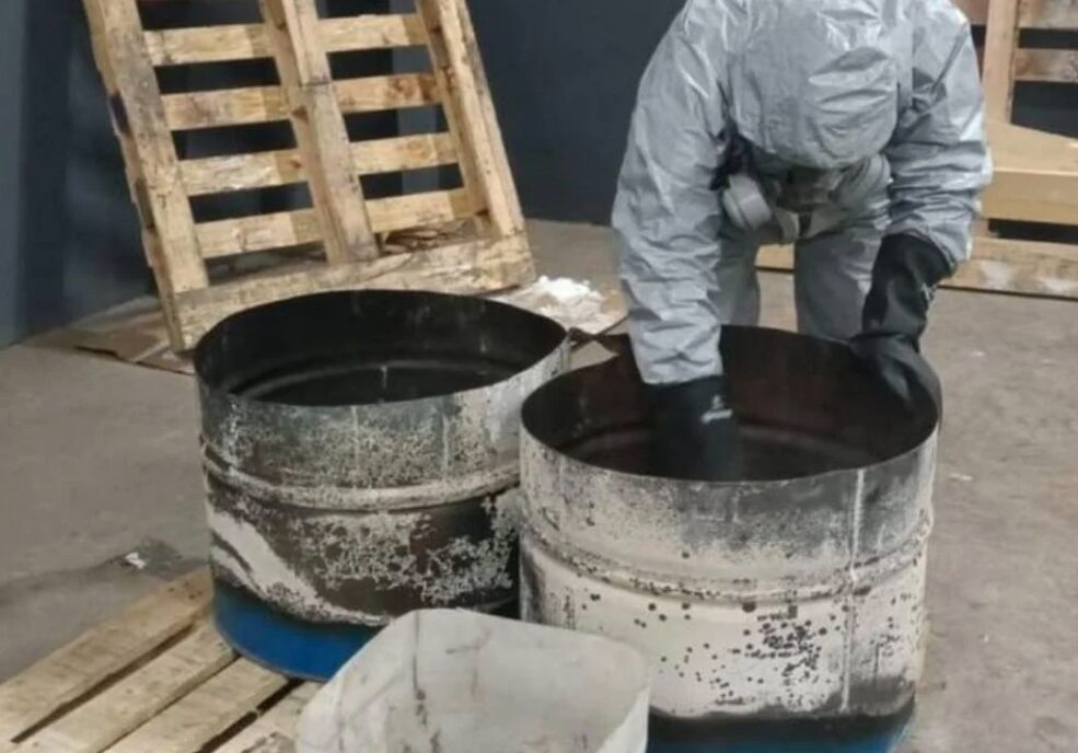 Durante la ejecución de las respectivas órdenes de cateo, realizada en cumplimiento de una carpeta de investigación, también se aseguraron 44 tambos con 200 litros de metilamina cada uno, con un estimado de 8 mil 800 litros de precursores químicos, así como material diverso para la elaboración de drogas sintéticas.