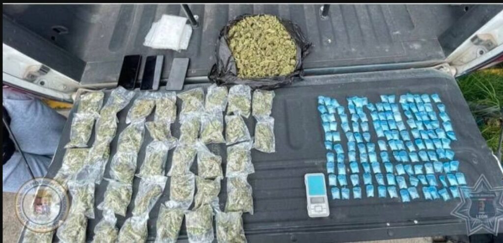 León, Gto. (28 julio 2025).- En operativos implementados en la ciudad de León, fueron decomisadas 19 mil 447 dosis de diversas drogas, el aseguramiento de 8 armas de fuego y 2 mil detenciones.
