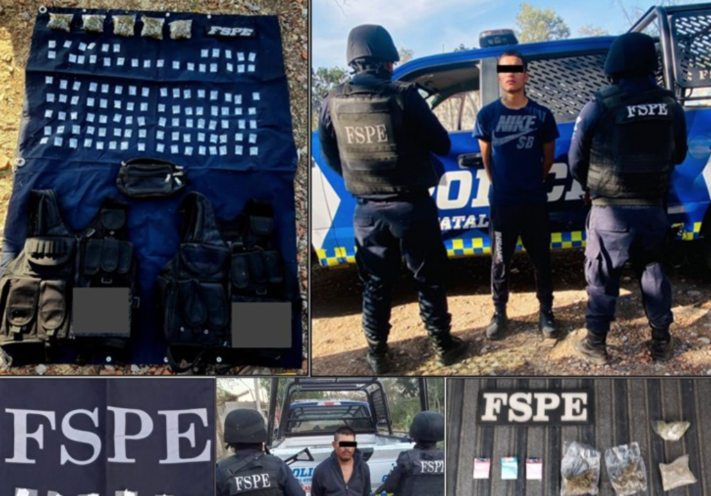 Mientras tanto, durante un patrullaje sobre la calle López García en la colonia Arandas, en este mismo municipio, elementos estatales tuvieron a la vista a una persona, esta persona al percatarse de la presencia de las FSPE, intentó correr sin motivo aparente.