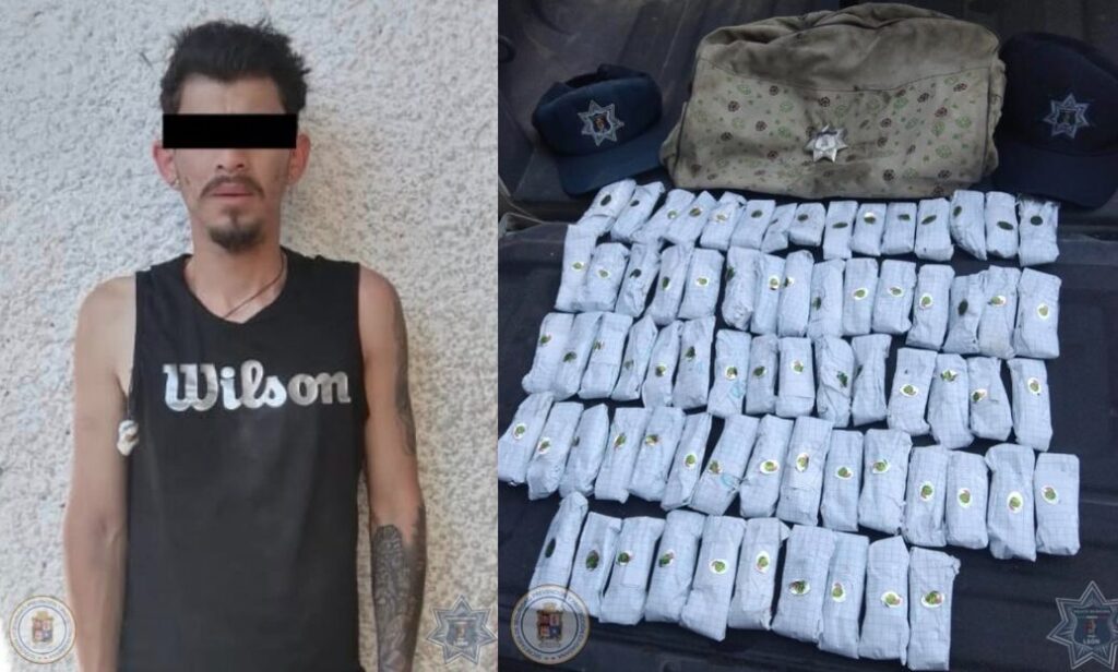 Durante la huida, el hombre dejó caer un paquete cubierto con papel que contenía hierba verde seca con las características de la marihuana. Finalmente, fue detenido sobre la calle Antonio Martínez Aguayo.