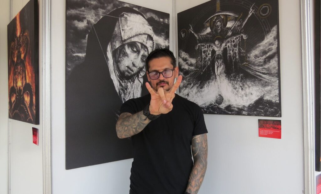 León, Gto. 11 Septiembre 2025.- El Candelabrum Metal Fest 2025 en su IV edición no solo hizo vibrar a la Velaria de la Feria con su atractivo cartel, sino que también pintó el lado más oscuro y artístico de la escena con la exposición del aclamado artista mexicano Néstor Ávalos.