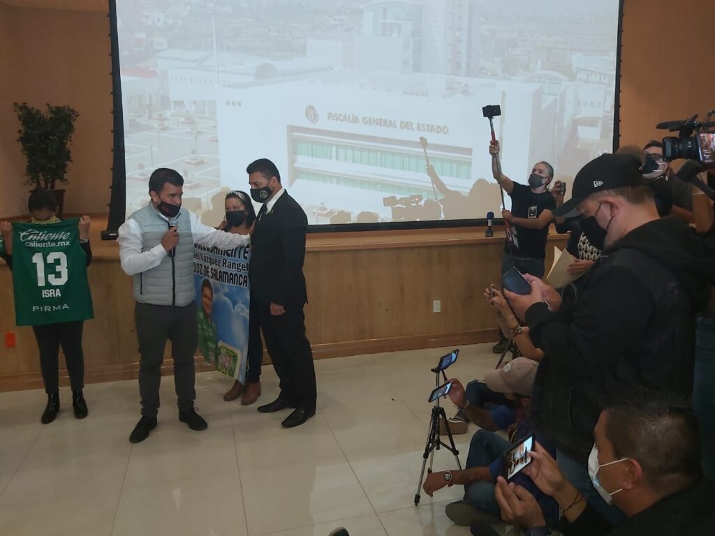 Con una pancarta donde con la fotografía de Israel, así como una playera del equipo León, sus hermanos y su viuda acudieron a la audiencia exigiendo justicia.