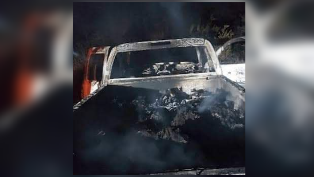 Celaya (23 marzo 2022).- Seis cuerpos fueron abandonados en una camioneta, y luego prendieron los cadáveres por lo que quedaron calcinados e irreconocibles.