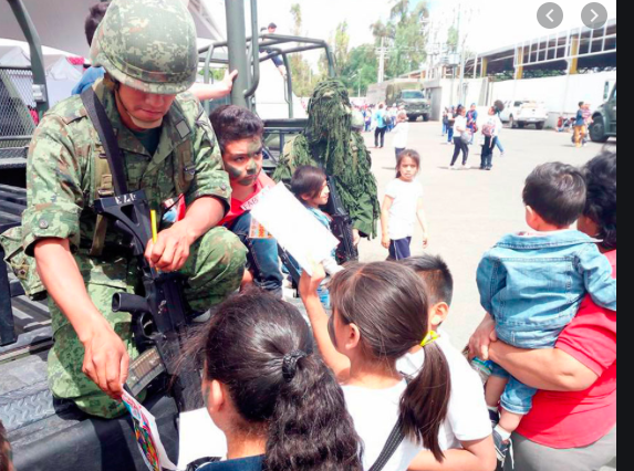 Los militares ven hasta alejarse a los pequeños que juegan en la tierra descalzos y sucios, tal vez son padres, tíos, hermanos de niños de la misma edad y les recuerdan a sus seres queridos, sin embargo ellos eligieron servir a México y en ello llevan el sacrificio de estar lejos de casa.