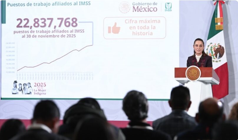 Empleo afiliado al IMSS registra nuevo récord histórico con 22 millones 837 mil 768 puestos de trabajo al 30 de noviembre de 2025