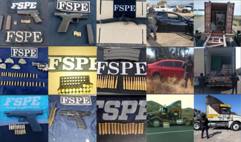 Este esfuerzo conjunto, en el periodo comprendido del 6 de febrero al 5 de marzo, reporta también el aseguramiento de 132 cargadores, 13 chalecos, 13 placas balísticas, 6 cascos, 26 artefactos ponchallantas y 349 vehículos, tractocamiones y semirremolques con reporte de robo recuperados o asegurados por su posible participación en un hecho ilícito, o por no acreditar su legal posesión.
