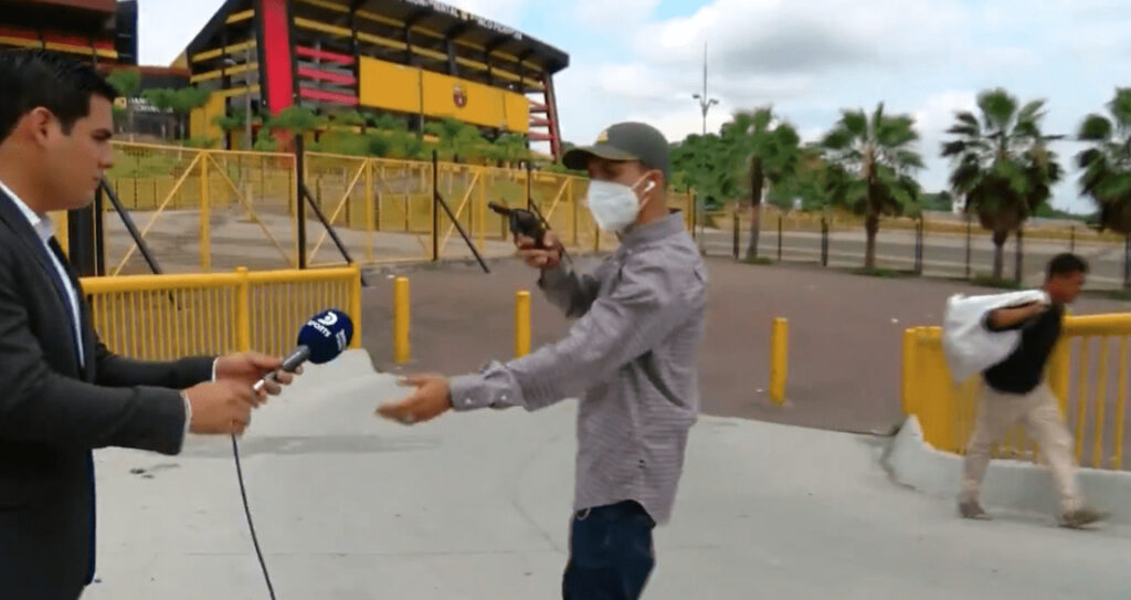 Este viernes, Diego Ordinola y su equipo grababan en el exterior del Estadio Monumental Isidro Romero Carbo, en la ciudad de Guayaquil, Ecuador cuando un hombre que sotenía un arma de fuego se acercó al conductor de televisión para exigirle su teléfono móvil.