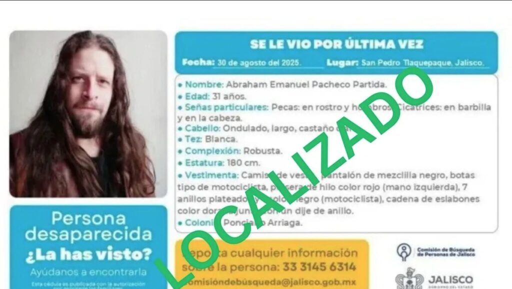 Jalisco 21 Septiembre 2025.- Por medio de redes sociales y desde hace 21 días, amigos y familiares de Abraham Emmanuel Pacheco, un joven de 31 años organizaron una campaña masiva en redes sociales para localizarlo, luego de no saberse de él desde el pasado 30 de agosto, cuando se dirigía a su trabajo.