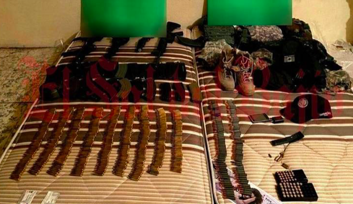 También se aseguraron 460 cartuchos calibre 223, 123 cartuchos calibre 7.62, 31 cartuchos calibre 40, 29 cartuchos calibre 380 , 8 cargadores de arma larga 7.62, 6 cargadores de arma larga 223, 6 armas largas y 2 cortas, varias estrellas poncha llantas
