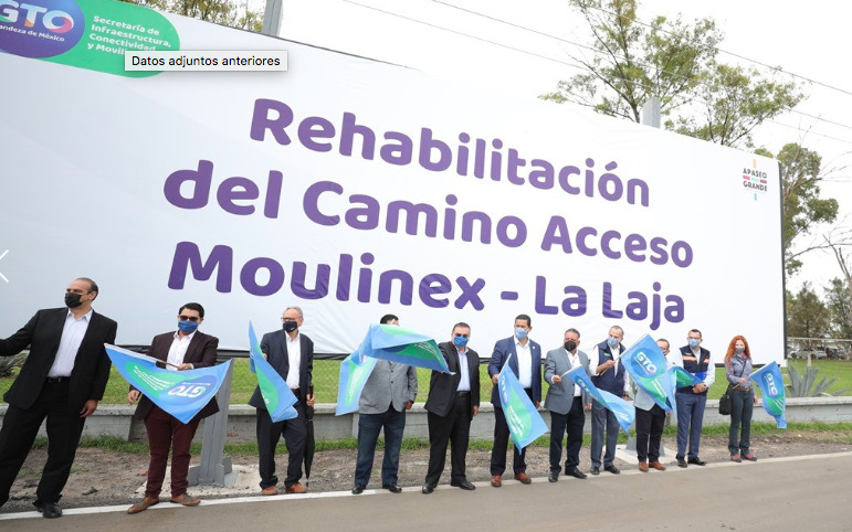 Apaseo el Grande, Gto. (6 julio 2021).- El Gobernador, Diego Sinhue Rodríguez Vallejo, entregó la rehabilitación del camino conocido como Moulinex-La Laja. Esto en la continuidad para la mejora y habilitación de caminos en Guanajuato, por ello, el Gobierno del Estado, a través de la Secretaría de Infraestructura, Conectividad y Movilidad (SICOM), invirtió 8.5 millones de pesos: 7.4 millones para la rehabilitación de 1.36 kilómetros de este camino y 1.1 millones de pesos en el alumbrado público de esta vía.